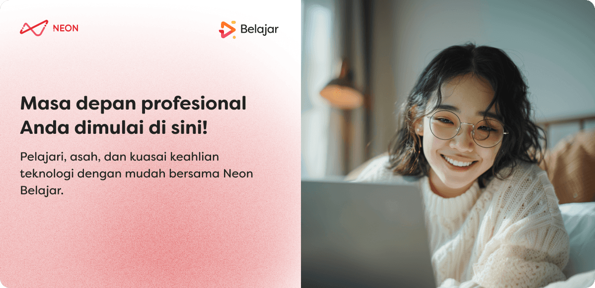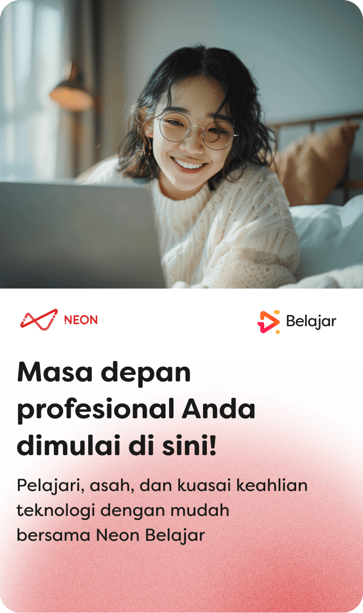 Neon Belajar hadir untuk menjadi solusi perjalanan studi dan karirmu. Kami menawarkan kursus-kursus online dan interaktif yang berfokus pada keahlian teknologi.