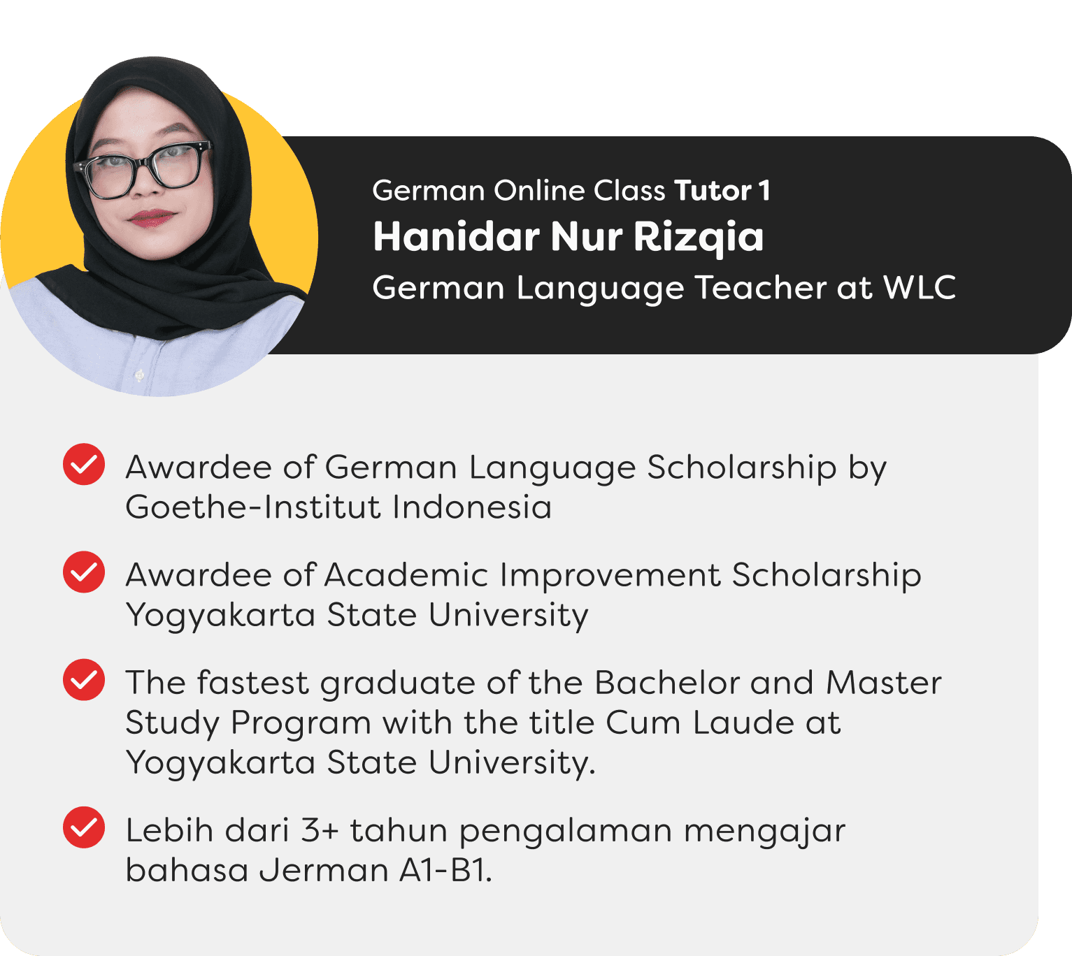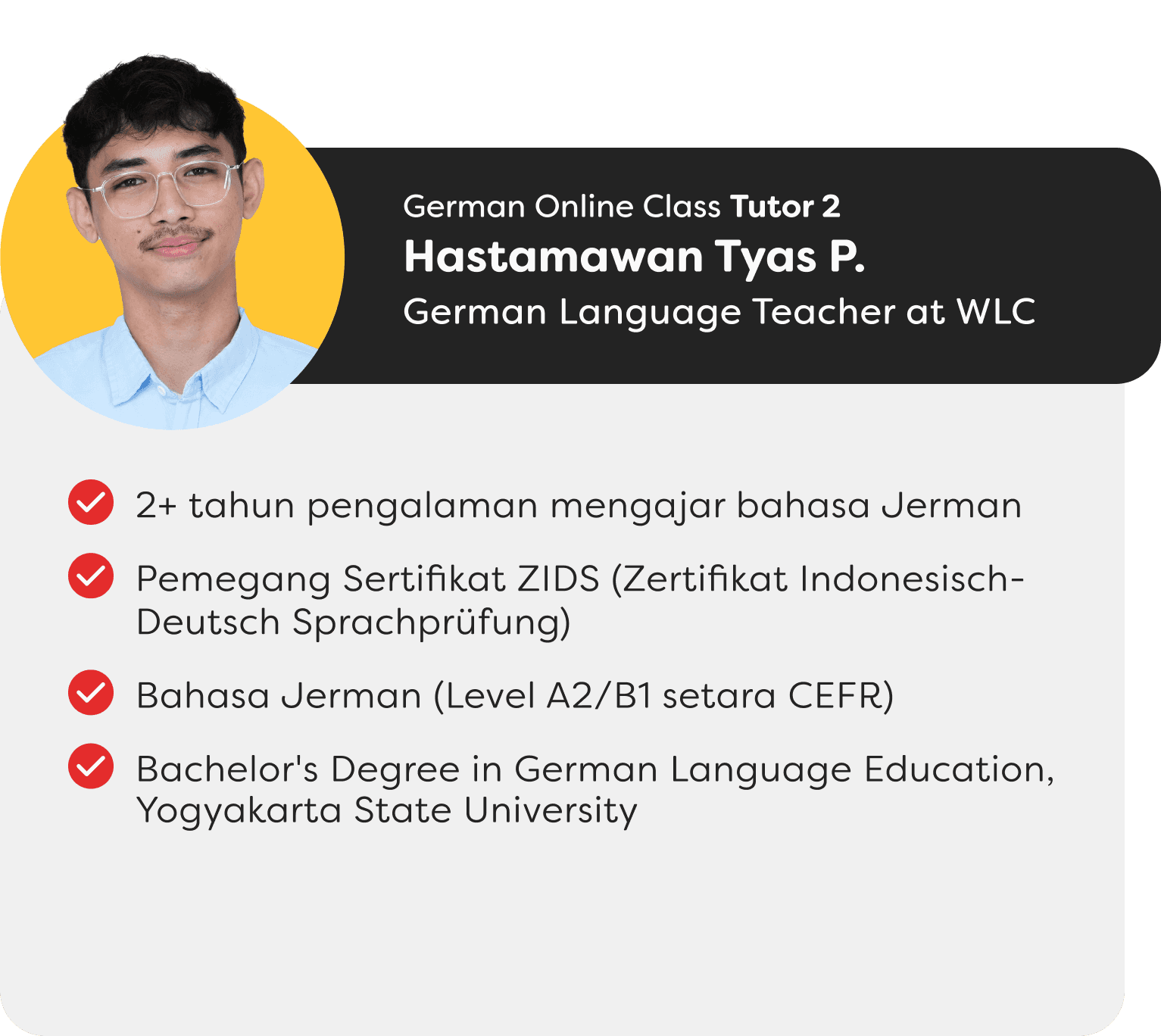 Tutor Berpengalaman dan pengajar aktif di World Languages Center.