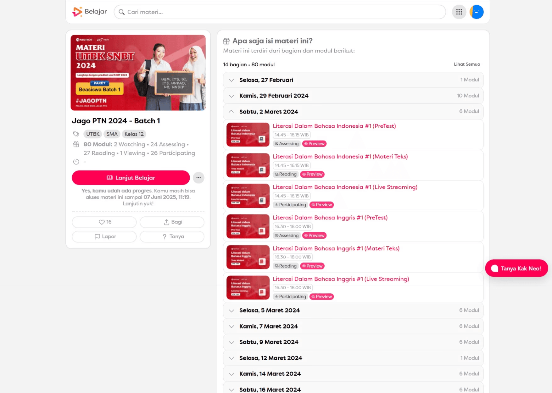 Kelas Online via Neon Belajar