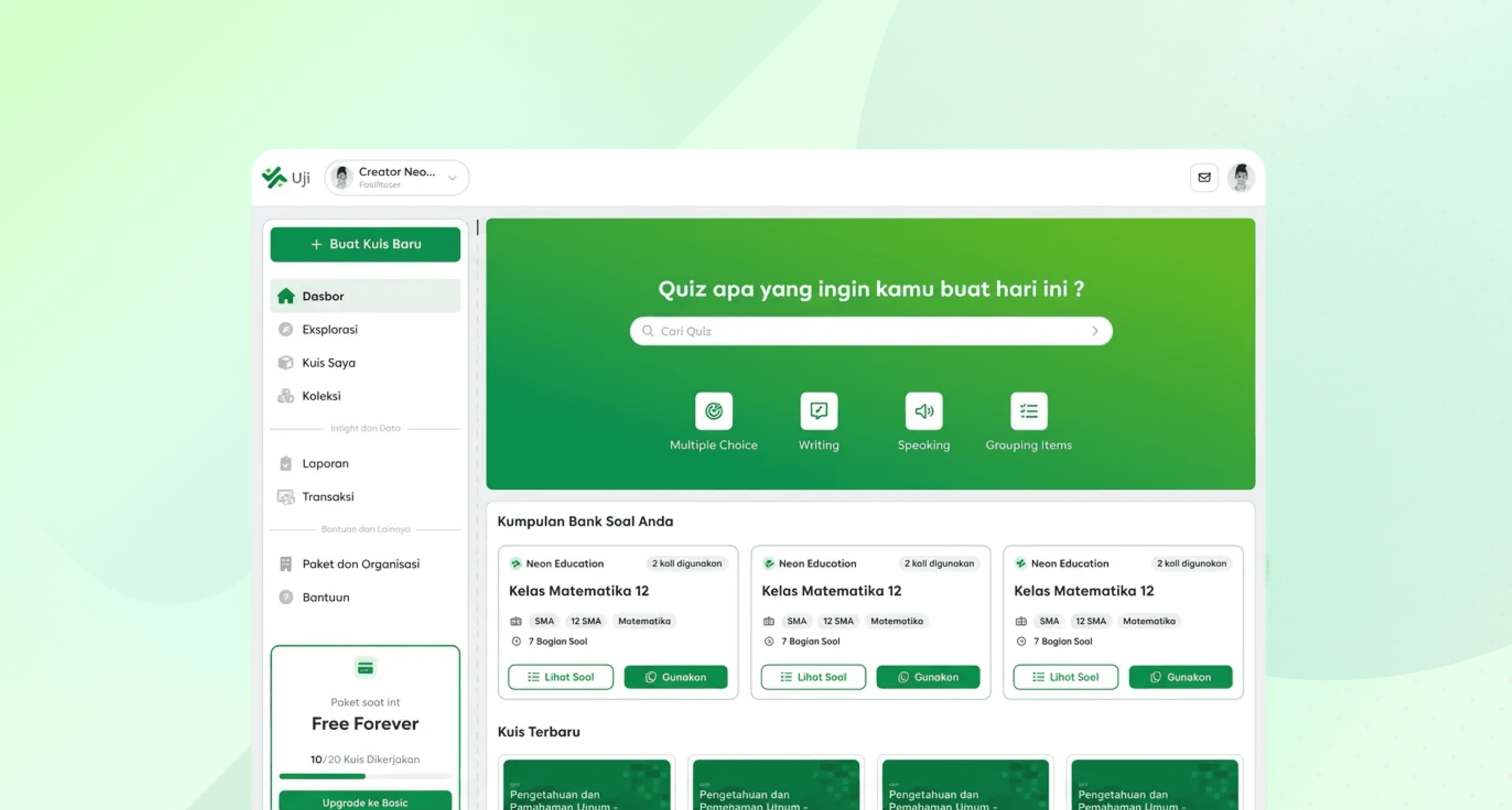 Dengan Neon Uji, warisan terbaik yang bisa kamu tinggalkan untuk sekolah bukan hanya kenangan — tapi bank soal yang solid dan terus berkembang.