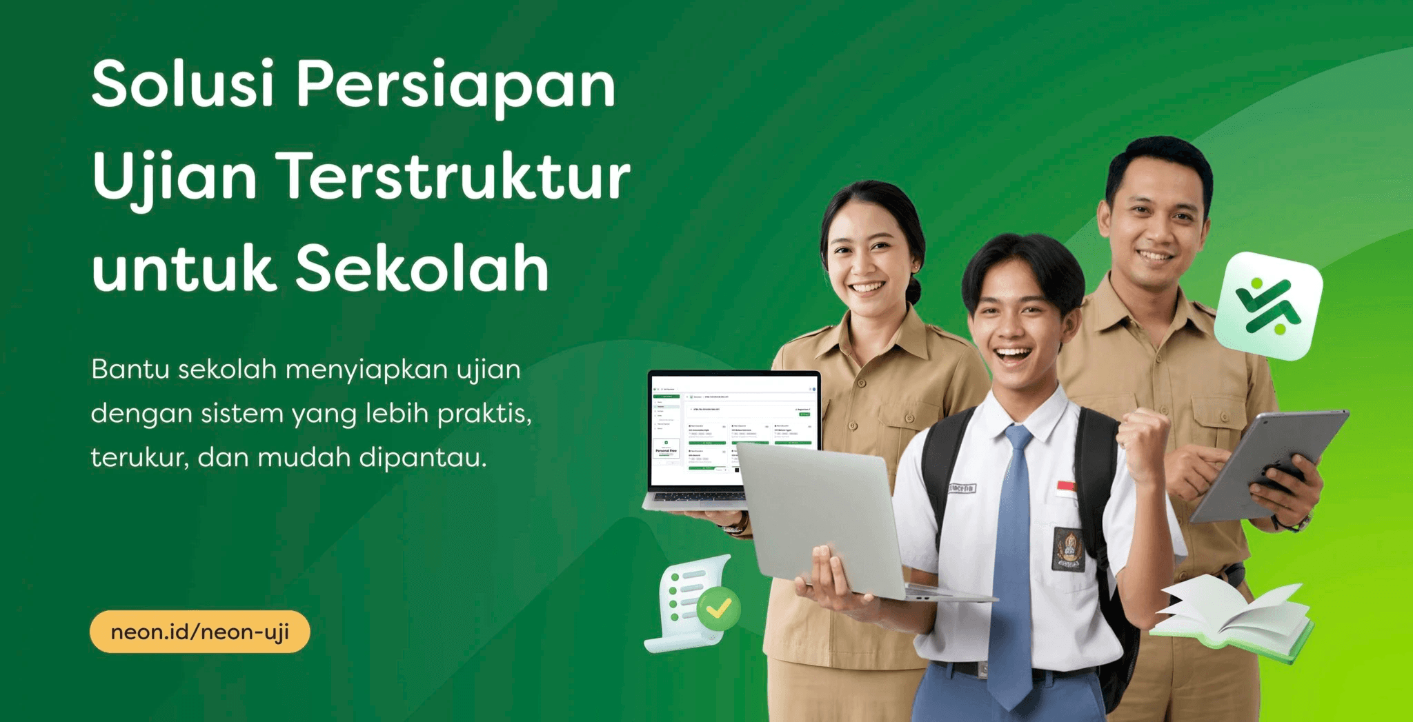 Pengembangan Neon Uji sebagai platform ujian online yang melibatkan ahli teknologi dan tenaga pendidikan tentu saja membantu guru lebih mudah menemukan soal ujian yang terstandar.