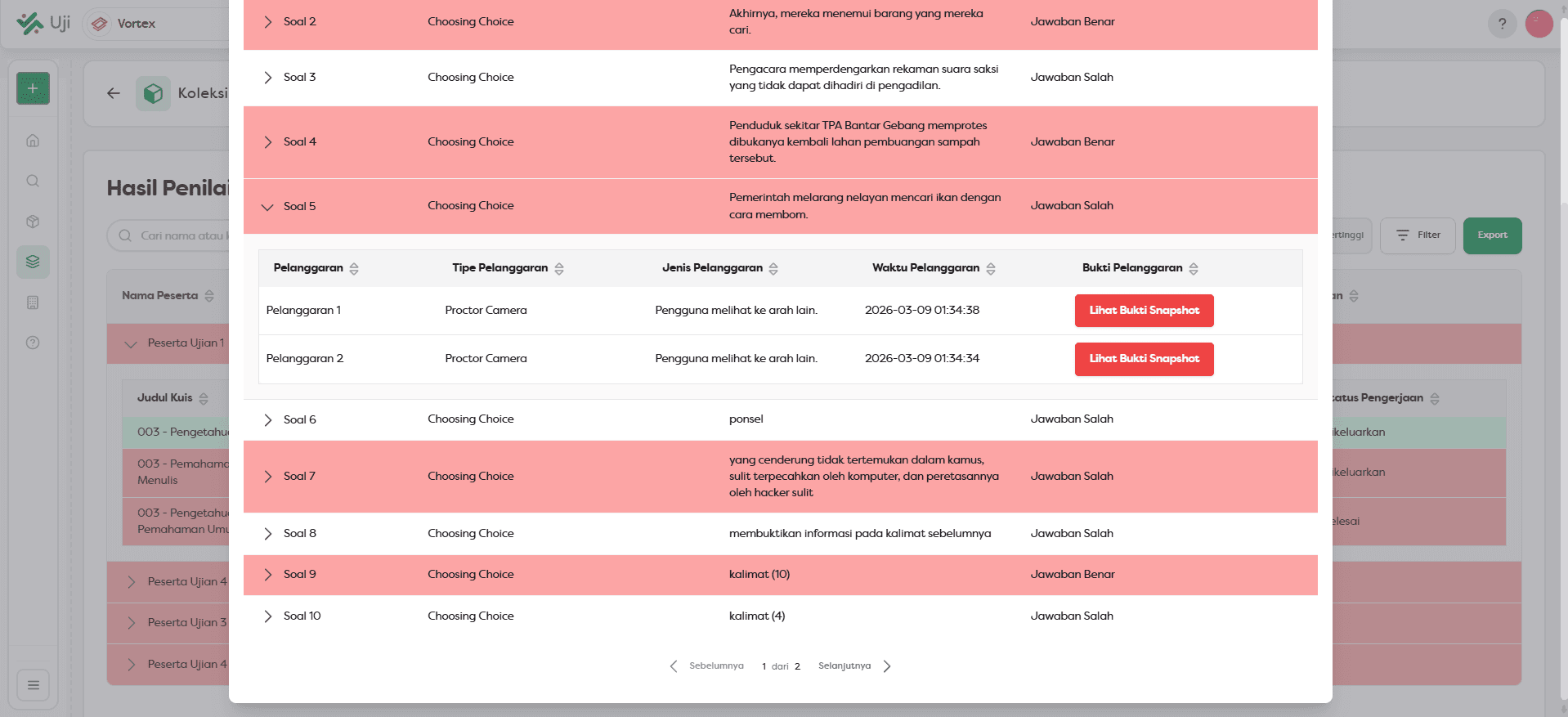 Sekarang kamu dapat melihat laporan pelanggaran yang dilakukan oleh Peserta selama Ujian berlangsung.