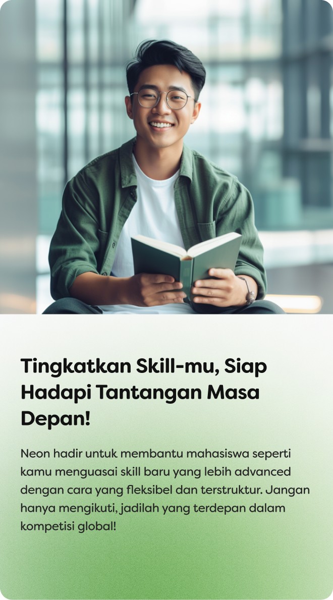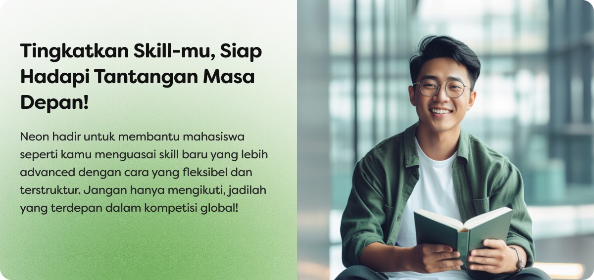 Sebagai mahasiswa yang ingin meningkatkan skill baru dan menjadi lebih kompetitif di dunia kerja, kamu pasti merasakan beberapa tantangan dalam proses belajar dan pengembangan diri. Neon Education hadir untuk memberikan solusi yang tepat.