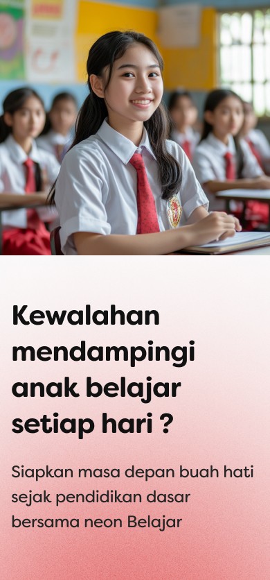 Neon hadir untuk mendukung setiap langkah anak dalam meraih prestasi akademik sejak dini. Dengan pendekatan yang terstruktur dan menyenangkan, kami siap membantu anak belajar lebih efektif dan mempersiapkan masa depan mereka dengan percaya diri.